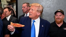 Former President Donald Trump put a brand new twist on the idea of hand-tossed pizza as he picked up slices and handed them out to a crowd in Fort Myers, Florida, on Friday.