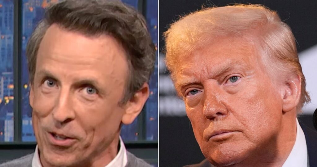 “Shoutout to the free speech warriors going radio silent whereas the president simply totally admits he’s punishing artists for his or her politics,” stated the “Late Evening” host. “You retain doing you, however solely when it matches your world view, you fucking hypocrites!”