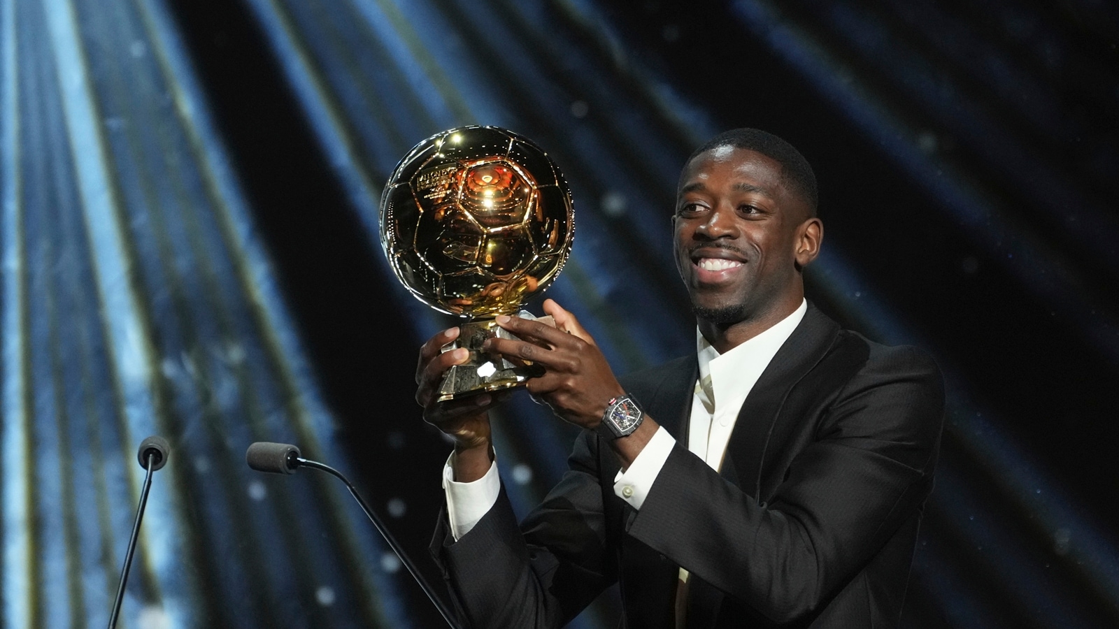 “What I’ve simply skilled is outstanding, I’ve no phrases for it, what occurred with PSG. I really feel a little bit of stress, it’s not straightforward to win this trophy, and to have it introduced to me by Ronaldinho, a legend of soccer, is outstanding,” Dembele mentioned on stage at a Paris ceremony the place he was supported by a number of teammates, the others being in Marseille for the Ligue 1 conflict in opposition to OM which they misplaced 1-0.