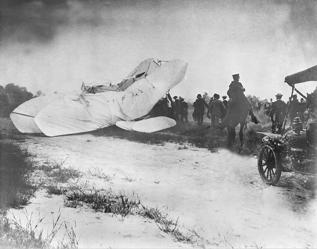 On Sept. 17, 1908, Lt. Thomas E. Selfridge of the U.S. Military Sign Corps grew to become the primary individual to die within the crash of a powered plane, the Wright Flyer, at Fort Myer, Virginia, simply exterior Washington, D.C. The pilot, Orville Wright, was significantly injured however survived.