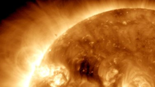“Seen in ultraviolet mild, these darkish patches on the Solar are often called coronal holes and are areas the place quick photo voltaic wind gushes out into area,” the company defined.