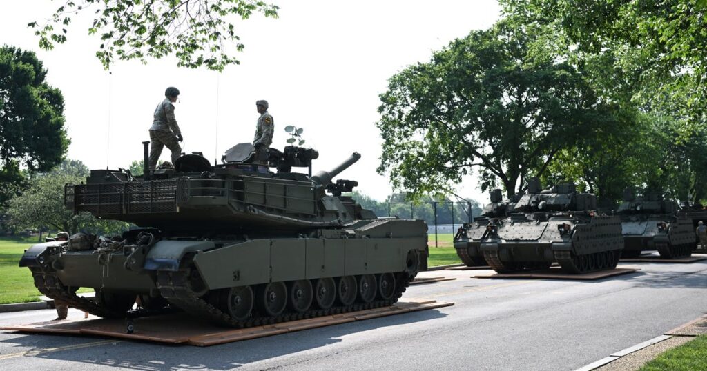 The automobile — operated by a contract truck driver — was a part of the convoy leaving the U.S. Military’s 250th anniversary occasion and was hauling an M1 Abrams tank from a staging space not removed from the Lincoln Memorial to a railroad in close by Maryland, in response to an Military doc obtained by USA Immediately.
