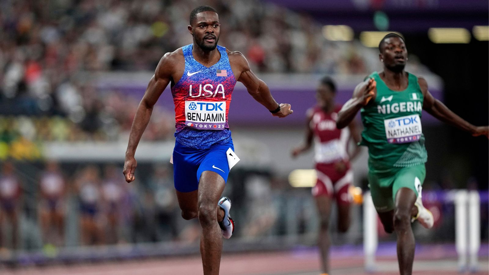 The 400m hurdles race was being pitted to be one of many hardest with former World champion Alison Dos Stanos of Brazil, World document holder Karsten Warholm, and Benjamin within the fray. However it turned out to be Benjamin’s race who had his title secured from the phrase go. Benjamin had a transparent lead as they got here across the remaining bend with Warholm beginning to fade and the American cruising to victory till his foot made contact with the ultimate hurdle.